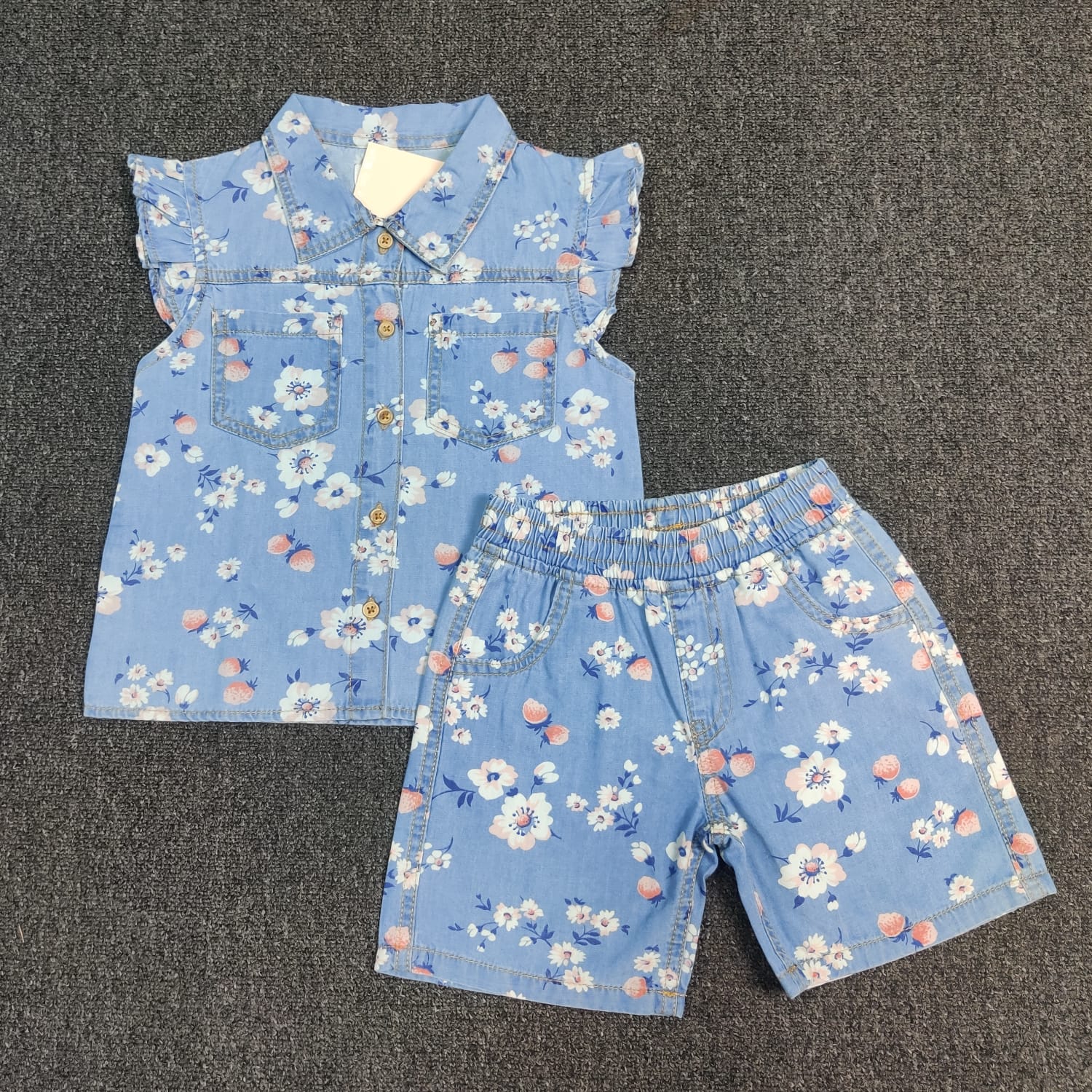Girls’ Floral Summer Dress & Denim Shorts Set